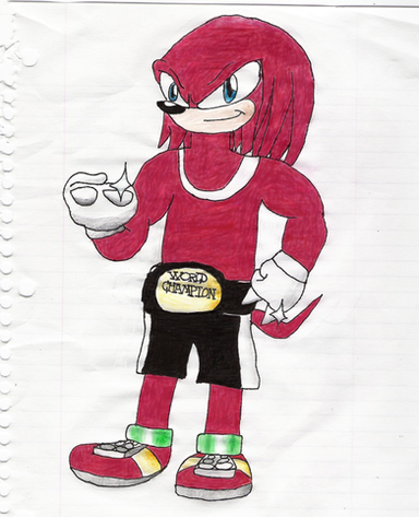 What would Team Sonic be without their muscle, the Red Brawler, Kuh-nuckles. (Just kidding, Flapjack joke)For Knuckles' new look, I wanted him to have an underground fighter look and for his bulky, muscular body to have more of a balanced look, so it wouldn't seem like Knuckles on steroids.
