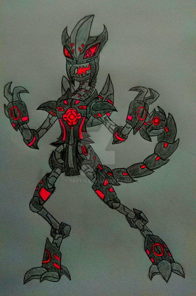 Mechanicon used to be the labor droid Mecko from the cyberformed planet Techros. His days were the same until Travail invaded his planet and in the chaos of the invasion, Mecko fell into a recycle chute and fell into the depths of trash and metal. Alone and fearing no one would rescue him, Mecko took himself apart and put himself back together with parts and weapons from other bots and escaped. That day Mecko became Mechanicon. He took out many of Travail's forces and dismantled his fellow robots to upgrade ย himself. Travail found the robot who was causing so much trouble and saw much potential in him. Mechanicon was recruited to become a general and was promised to be given the most advanced and dangerous weapons they would recover from each planet they conquered. As a gift to Mechanicon, Travail gave him total control over Techros, to do with it as he saw fit. Mechanicon destroyed the planet and with the wreckage, he built three colossal spaceships capable of cyber terraforming whole planets to be just like his former homeplanet with the exception of making them become cold desolate mechanical wastelands.