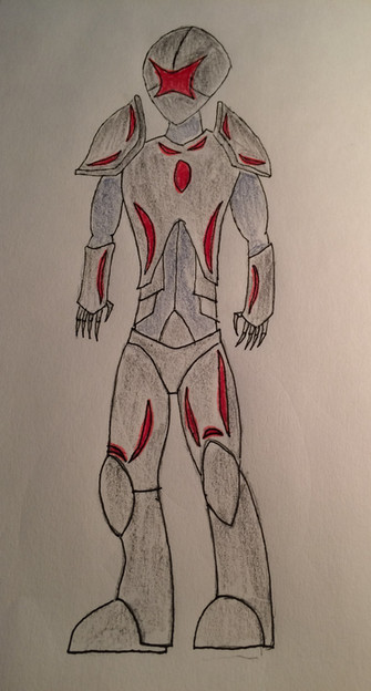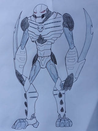 You know I drew something like this before two years ago! I named him Cybertronic he was once a nanotech device but he became self-aware and fused technology and weapons to himself. He also travels the galaxy looking for more weapons and technology to make himself even more powerful! Great minds think alike!