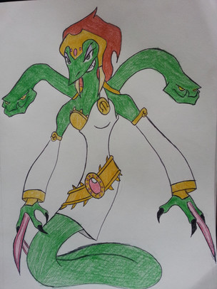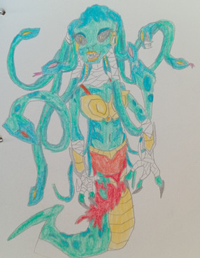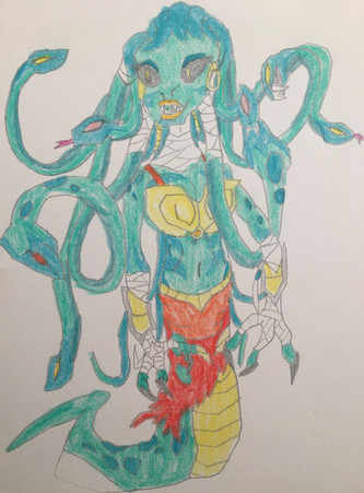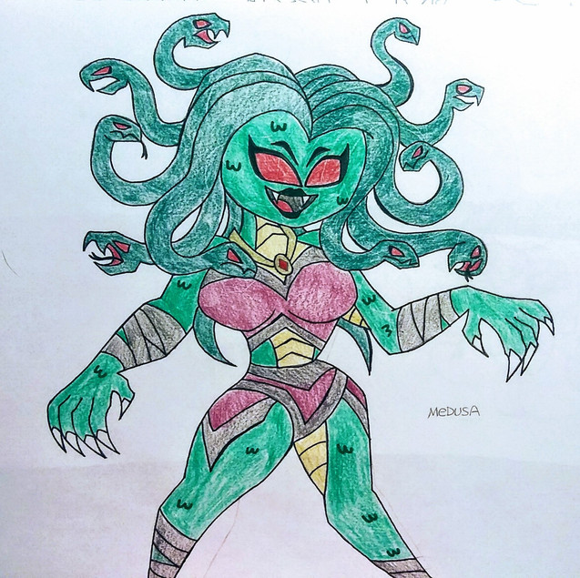 The final result of all my WIPsSo this Medusa came from my old Monstrosities idea. She would of joined the monstrosities in a story arc where they fight against the greek gods who are really fallen angels on a power trip. Medusa want to get revenge on Poseidon for causing her to become a Gorgon.