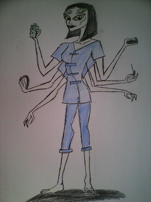 Definitely a better design than her actual one in the movie(essentially just a six-armed old hag) and a much better motivation than just "I hate the other monsters, because reasons."