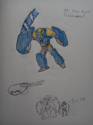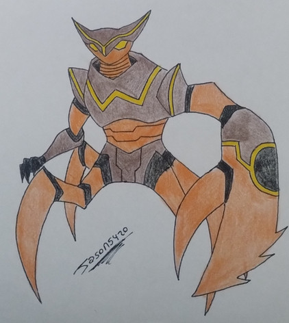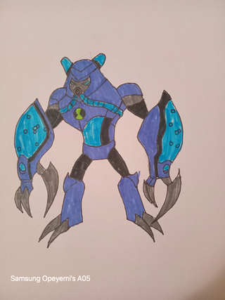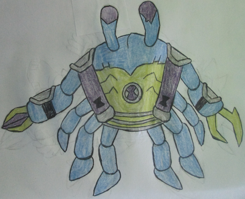 Power/Abilities: Reinforced Exoskeleton provides incredible endurance. Strength increases twofold underwater. Shoots blasts of water out of his claws. By taking water into the vents of his claws, he can mix it with a gelatinous protein created by his body and make weapons like whips and blades.