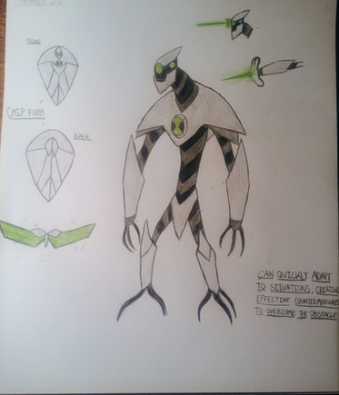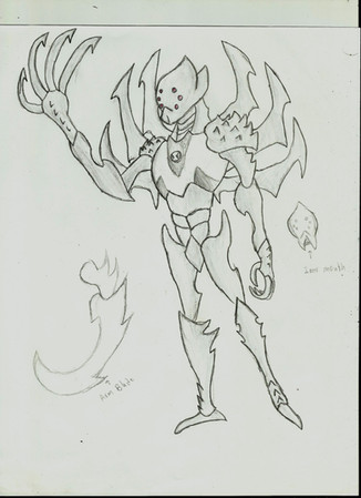 Powers/Abilities: His exoskeleton can harden to become almost completely metallic, Able to shapeshift parts of his body to become weapons some of which can through almost anything, When metallic he is virtually invulnerable to any harm except for extreme heat.