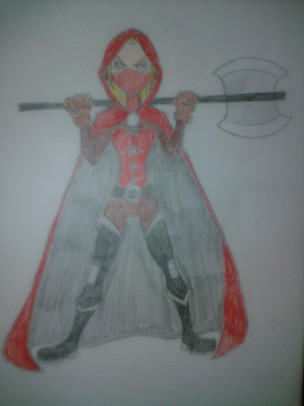 A remake of my last Red Hood pic and my version of Little Red Riding Hood for my Monstrosities comic idea.She's a Hunter of mythical creatures and her grandparents are the Mad Hatter and Goldilocks and her father is The Woodsman. Red inherited his axe, which splits into two one sided axes, that she uses to slay monsters. There's even rumors that she's even descended from King Arthur. She has a Vader-like presence where she is mostly silent but everyone around her fears her presence and what she could do them if they step out of line.