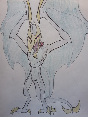 He has different powers here. His head frills when shaking releases a high pitch sound that blinds and immobilizes prey vulpimancers. His tongue is elastic and has a paralytic toxin to stop its prey when it stops using his sonic attack.