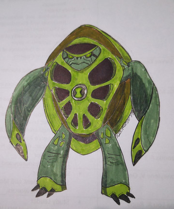 As thanks to for giving me a membership, I doing number of drawings for him that also include the unseen future Ben 10 aliens Shellhead, Snakepit, and Sandbox.Here's my interpretation of Shelhead who has an egg shaped shell that can pop open with relative ease on Shellhead's part but if you try to pry it open yourself you'll find that it's almost impossible.