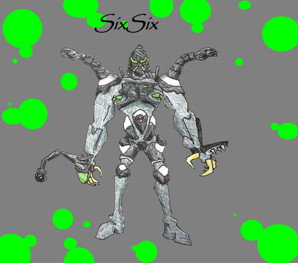 Additional Info: Knujian Exobite's true forms are their heads and their "spines" and closely resemble Earth snakes. Their planet is considered the junkyard of the Universe, but they don't consider this a bad thing as they build their bodies from the random pieces of discarded machines sent there almost daily. They also are considered environmentally friendy by Earth standards as they consume any trash and turn it into energy. Skeltron consumes objects with his "chest" to power himself up.