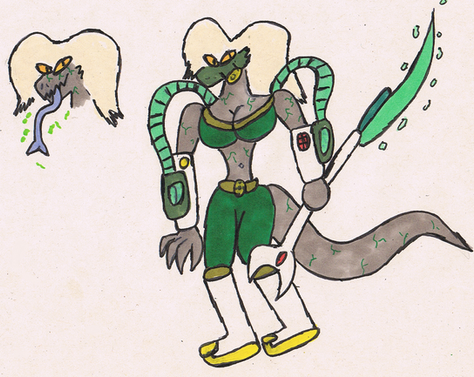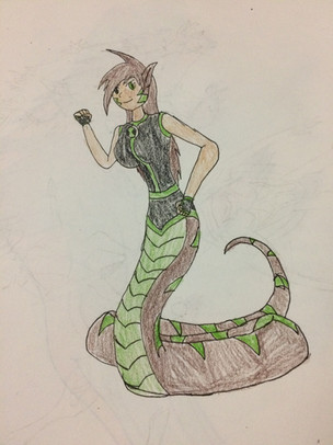 Another Triple Hybrid likeBefore the kidnapping of innocent people for Hybrid experimentation trials, some recruiters were sent out to find people desperate enough for a change. One of these found people were Kate Sooners, a girl who felt helpless to stop horrible things from happening to her and her family, so she decided to do whatever it took get stronger, including experimentation. She was put through the trials and became a hybrid Puma, she was stronger, faster, and able to do things no one else thought possible. Further study of Kate's DNA showed her capable of integrating more animal DNA into her body. Kate refused and was tranquilized. She was strapped to a laboratory table and had a vial of King Cobra hybrid serum injected into her body, which turned her from her Puma form into her Puma/Cobra form in the picture above. Kate considered herself a freak at the point and hid herself away whenever possible. After the Great Hybrid Escape from Trex Industries, many hybrids escaped into the city, including Kate who wandered around the sewers away from the "normal", people as she put it. She wouldn't find a place to fit in until she found three others like her and formed a team with them and even a friendship. She owns the way she looks now and goes out to do exactly what she originally planned for, defending those around her with her new strength and abilities.