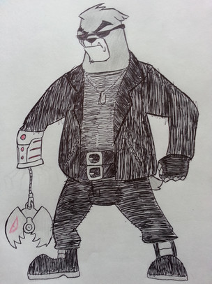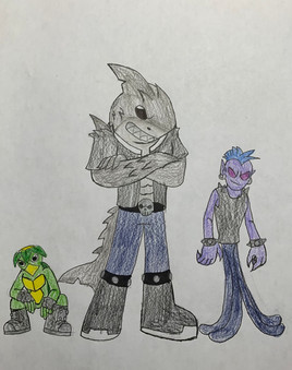 For Slither I left slighty changed him with giving him a Mohawk of spikes instead of a whole one that he originally had. I also changed his species to a rattlesnake so I could include this addition, to make him seem like he belonged in a biker gang I gave him a switch blade that comes out the rattle at the end of his tail.