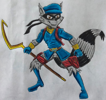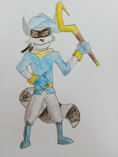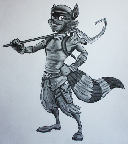 My reimaging of the titular character from the Sly Cooper games.Backstory: Sly comes from a long ling of master thieves known as the Cooper Clan. Their lineage dates back centuries and their greatest treasure is the Thievius Racconus, a book built by the egyptian ancestor Slytankhamen I and owned by all Coopers where they recorded their greatest secrets and techniques with which they performed their greatest heists with. Sly was only five when his father, Connor decided to show him the book so Sly can understand the honor it meant to belong to a family such as theirs. One night, the Coopers were attacked by a group of villains led by someone Connor Cooper knew as the Winged Terror, a figure that has plagued the Cooper Clan and hunted many of them down. Connor lost his life defending his wife, Maria, and Sly. Maria then lost her life getting Sly out of their burning home. Sly hid himself for the rest of the night and returned to his burned home at the break of dawn. All that was left for Sly to collect from his former home was Connor's hat and cane as well as the binding of Thievius Racconus, its pages taken by the people who left Sly as an orphan. Sly would hide the cane and book binding in case anyone, like the cops, would try and take it from him.