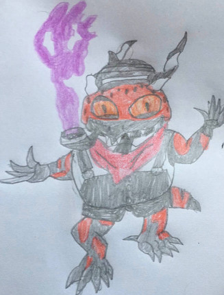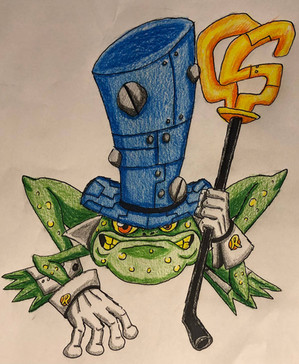Powers/Abilities: Raleigh is a certified tech genius and has developed many deadly traps for anyone dumb enough to set foot on his island. Being a frog, Raleigh has an elastic tongue, legs made for leaping, and a vocal sac which he expands for a surprise attack.