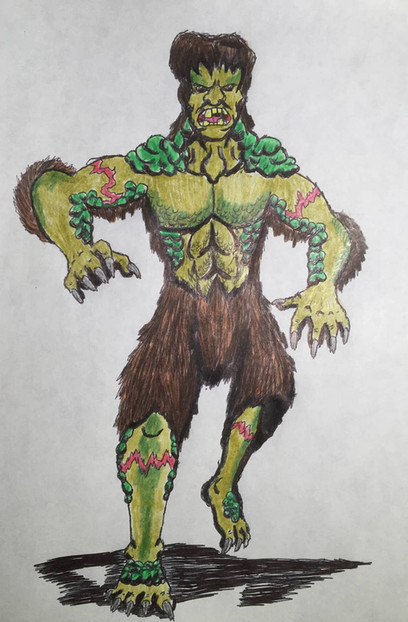 My version of the Caveman from Scooby Doo, Where Are You ?In his new history, hundreds of thousands of years ago when cavemen walked the Earth, they where visited by beings not from this world who experimented on many different life forms including cavemen. This particular one was used in a metamorphic DNA trial but escaped through the middle of it. He wandered into a blizzard where he would never be seen again or found until many millennia later. He was found in a block of ice by Professor Arthur Wayne. Efforts were made to keep the ice block frozen but after it was recovered and transported, the ice melted to the point that the Caveman burst out from inside. The alien part of him kept him in cryogenic sleep for all those years. Now running on instinct alone, he's out to infect others to become just like him while he himself is becoming more alien and less human.