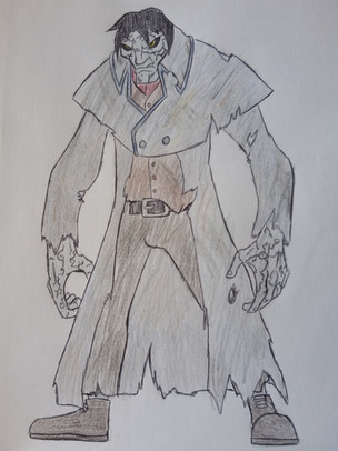 My reimagined version of Scooby Doo's The CreeperFor his history, in life he was known as Deacon Carlswell, a 1800s banker in New Orleans. He lived a relatively peaceful life with his daughter Alice May until he discovered his fellow workers trying to rob their bank. He tried going to the police to tell them of the robbery but the workers captured him and Alice May, killed them, and dumped their bodies in the Louisiana swamps. Fast forward three centuries later an old witch, Zebelda Perkins, who lived a relatively lonely life in a swamp discovered their bodies and used her necromancy to bring them back to life and become the "twisted" family she never had.
