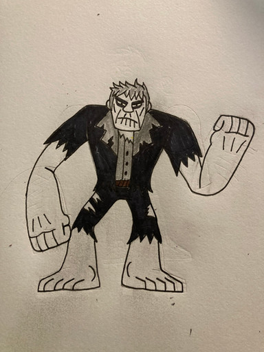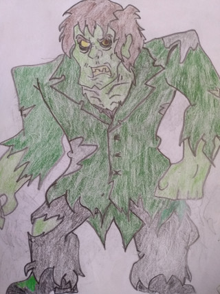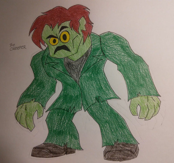In my opinion, I would have not combined the Creeper and the Swamp Zombie together, for the S.Z.(Swamp Zombie for short), take away his hair and he's perfect. For the Creeper, I would have made him be a deformed security guard working at the Crystal Cove Bank, but his deformity made him appear unsettling and frightening. So he seeks out Dr. Johnathan Jacobo in order to make him appear more appealing, but due to Jacobo's speciality in only DNA genetics, he can't help him. This causes the guard to go into a mindless rage, which in turn, leads to him to accidentally cause a shelf of mutagens to spill on him. The mutagens were an early and more unstable form of Dr. J. Jacobo's experiments in primate DNA. At first, the mutagens seem to have no effect on him, but several days after the incident, while at home, spending time with his only daughter, Alice May Carlswell, he suddenly starts to mutate into a large, Neanderthal/Ape hybrid creature, with the mutagens causing him to slip between the different phases of matters, allowing him pass through certain objects. The transformation also caused him to lose his mind, in which he entered a feral, beast like state, and his memories to become warped & distorted, with his strongest memories of taking money & jewels from the vault and the image of a little, blonde girl name Alice May. He was once Deacon Carlswell, now he is the Creeper of Crystal Cove.