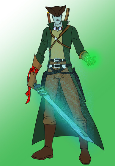 A character concept I did for a villain belonging to NRGComicsNow this guy was very fun to make when I understood his motif of being a collector of supernatural artifacts. I remember doing much research on what weapons he would sport like his Achilles Chestplate, Eye of the Old Ones, Hermes' staff, Thor's belt, and rings that I cannot remember the name of, but I know they were attached to Arthurian Legend. Oh and his feather coat belonged to Odin and allowed him to summon ravens. I think that about covers everything I included for my concept of the Curator.