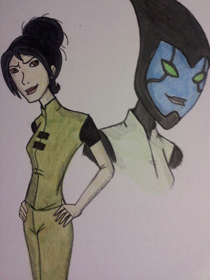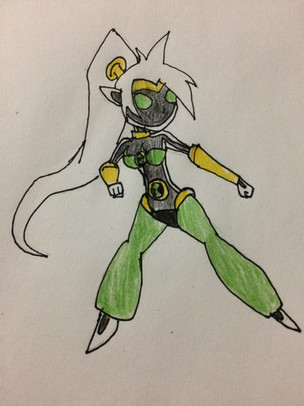 She must take after the Marvel characters "Taskmaster" and "Finesse" and the all female species called the Asari from the Mass Effect Video Game series.