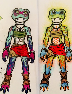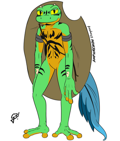 In many hidden forests and swamps around the world you can find very special creatures, some that even were once written off as myth. In one of these swamps, there lives a golden Froggish, a special species of frog that is bigger than a regular frog, can stand up upright, and is as intelligent as humans. This special Froggish was Willik and he was special because he was the first golden froggish in centuries to be born and his color is a sign of great things to come in his life. In his teen year Willik saw from afar a girl who wandered through the swamp and took in all that wonders that everyone else found gross. Taking a leap of faith, Willik revealed himself, yet the girl didn't flee like part of him was afraid would happen. This girl's name was Cessily and she was amazed by Willik. Over the years, Willik and Cessily became the best of friends and had many adventures in the swamp. For Willik, friendship turned into infatuation and he wished he could be something more with Cessily. A witch appeared before him, hearing the desires that his heart was screaming to the heavens (as she put it). She gave him an offer, give up a piece of himself and a great change can occur to allow him be with Cessily. Willik wondered if such a thing could be possible and wondered if the witch wouldn't go back on her word later on. The witch seeing his hesitation told him maybe he didn't want to live with his true love and Willik accepted the offer. A drop of his blood was taken and from it, a golden sphere was formed. The witch told him that he needs to give it to Cessily and a great change would occur that would let them be together. Later on Willik gave the sphere to Cessily and suddenly she was no longer a human, but a Froggish, just like Willik. Willik and Cessily ran to Willik's village to consult his wise grandpa on this matter but found that the Froggish village was empty. Before they had time to speculate where everyone was, the witch appeared. She had just taken her price for the spell, his entire village. She said that she needed a part of him and since he considered everyone in the village family, they were a part of him emotionally, and up for grabs. When told that he thought the blood was the price, she told him that it went right back to him in the form of the sphere, so her price still was unpaid. Willik's final response was that the sphere didn't work right, it was suppose to change him into a human, but the witch never promised that, she said a great change would occur, not to who specifically. Willik was so quick to get what he wanted that he didn't consider how vague the witches original words were. The witch disappeared and left the Froggish alone. Willik was devastated, but Cessily kept hope alive with her words of how together they would save Willik's family and villagers and that they'd find the witch and make her turn Cessily back. Willick secretly didn't want that last part, but there were bigger matters to deal with and he couldn't be selfish. Now, Willik and Cessily journey the world to find any clues to the witch's home and nothing will stop them.This is the last contest winner of my Monstrosities contest by rizegreymon22 . I made a few changes in look and story to fit my Monstrosities universe and give the Frog Prince more of a warrior prince look to him. If you wanna see the original story, check the original drawing.