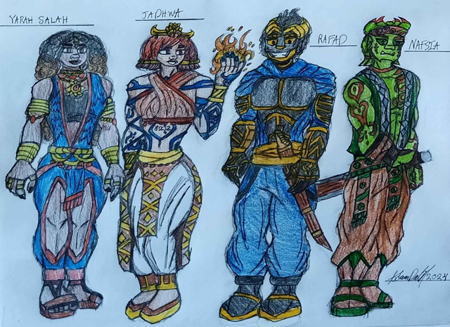 Sahar was ready to go and get her mother but from her very first step into the City of Brass, the intense, scorching heat, the numerous Efreet warriors, and Raghba’s minimal powers cause Sahar and Raghba to retreat back to the Earth Realm. Being just a novice in fighting and magic, Sahar can’t hope to get any closer to where her mom is being held, so she must train in fighting criminals and villains and journey to different realms to learn magic and gain mythical items that will help Sahar save her mom from the City of Brass. In the Earth Realm, Sahar has to hide who she is, so criminals and police won’t come after her or her family, so Raghba gives Sahar a hero outfit and Sahar takes the hero name of Wisher.