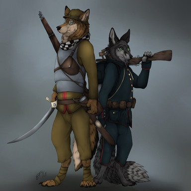 #anthro #dog #dogs #guard #musket #soldier #uniform #wolf