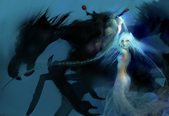 Wooooow! I kinda feel like it is deep, really deep, underwater and this is like an electric mermaid or something.. So cool! ^^