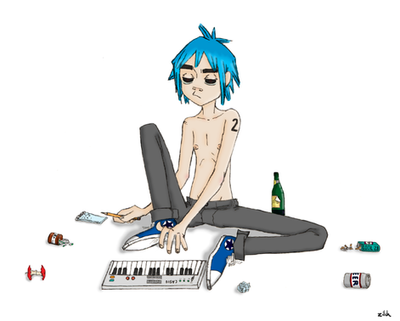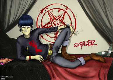 This is becoming sort of a theme, looks like. I did a solo pic for 2D, and then Noodle, so I figured it was Murdoc's turn for some action of his own again.Once again, the best part was scribbling all the graffiti on the wall. It's a little easier to see this time than in the 2D picture, since it's on a light background.