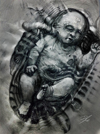 FAAAAARRRR, man, that is jolly disturbing. Actually it reminds me of a series which gave me the mare's dream back in the eighties. It was called V. That reminds me of the lil alien which this lady gave birth to. Nice brush work .