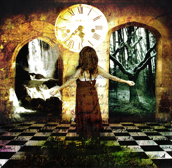 hmm....Trying something a little different from my usual 'style'. I was trying for a Victorian lithograph feel, almost macabre but not quite with this. Its supposed to be an interpretation of a dream. Like you are looking into the persons head as they are having this wierd dream about choices. Hence the dreamlike feel to it.... no really...