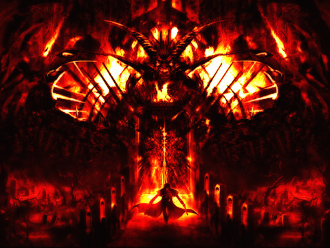 Wow! This one is so amazingly awesomely cool and beautiful! It's so kind of surreal, almost like a dream (or nightmare ^^). A really interesting view of hell!