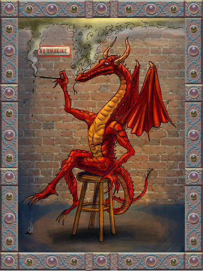 I just loved the original image I had in my head of a dragon taking 5 minutes out from slaying knights and eating virgins to have a sit down to read the paper and have a smoke.