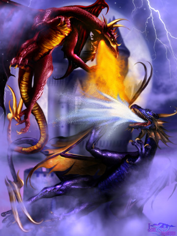 So KEWL!!!! This would be almost the exact depiction of a poem I wrote awhile back. I'll have to dig it out and submit it. The scales and the posing of the dragons, PHENOMENAL!!!