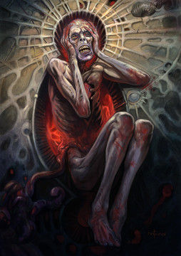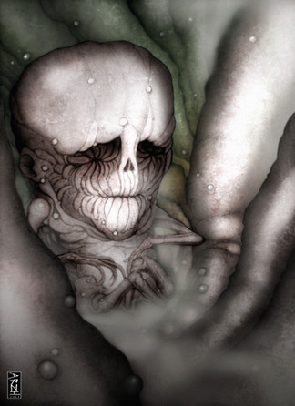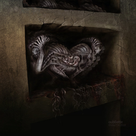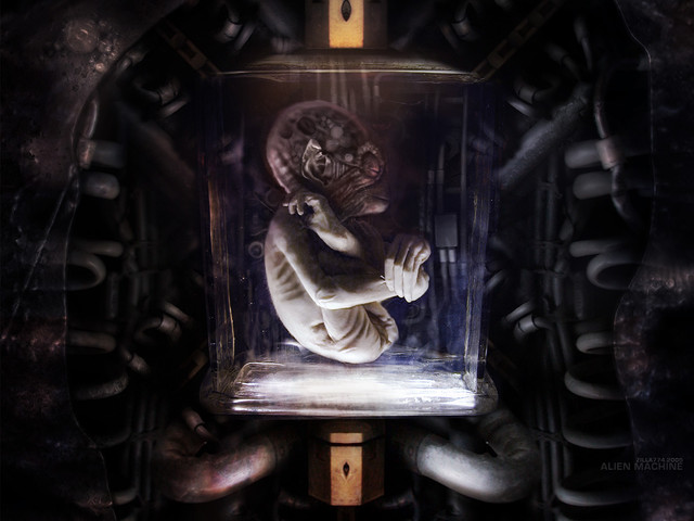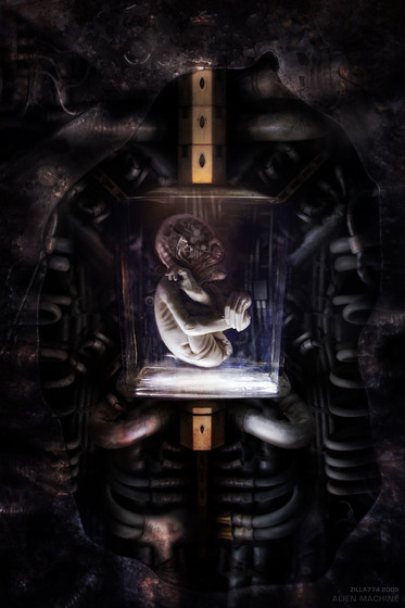 don't know if someone else saud this, but it looks kinda like Giger's works