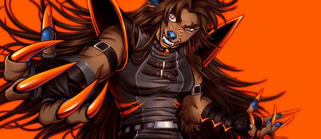 I love the hair/fur the most but you also do nice work with hands, honestly. His sinister big ol' grin brings it all home for me though. >;B