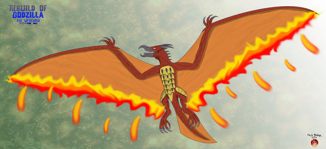 Rodan is known by the world as the giant bird of flames, or a more relatable name, as the One Born Of Fire, since during his flight he soars through the sky, bringing the wind with him, and flying with the wings that burn forever. Many say Rodan is the Embodiment of Fire, an element that is the most known throughout the dragon realms, but back with him, they call Rodan the One Born Of Fire, because the old ones who knew about him said that he was born within a volcano, but he wasn’t born from the volcano in which Malefor lays his lair above, he was born from one from a far away land. His breath is different from fire, since his breath was fire, but with a slight bit of aether within it, which was unusual for one that is born from fire.