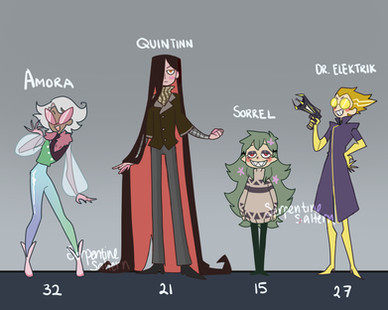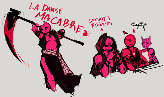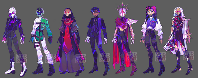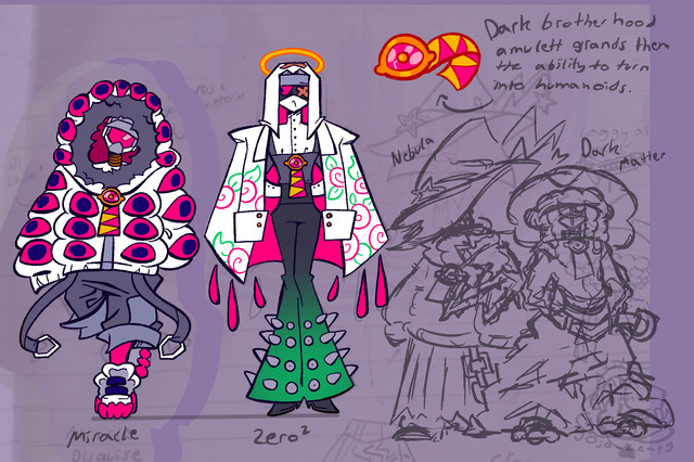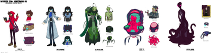 Hype, a curse that has taken a physical body thanks to Corruption aiding it. Hype disguises themselves as a charming party-goer, using hype/causing a crowd to lure in prey so that she can devour. She's close to being a werewolf-esque hungry parasite that feasts off of shapes.