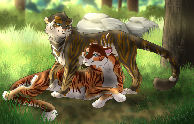 Collab between kibafan1232 and I. She sketched, lined and coloured and I did the shading/lighting and the background