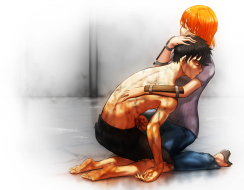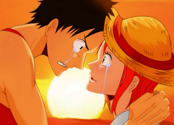 I love this picture of luffy and nami! whoever it is that made Nami Cry is Gonna get their Asses kicked by a Mad Luffy.