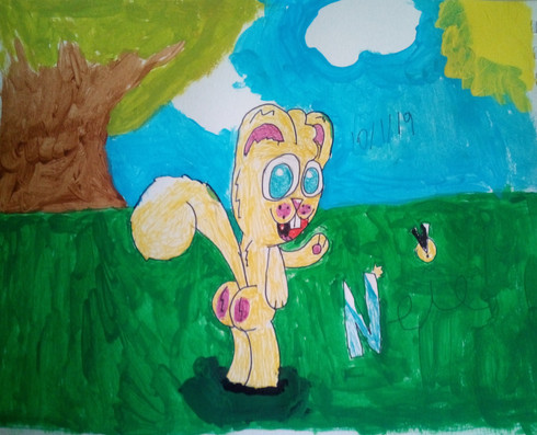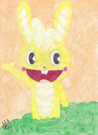 My attempt at a character from an "interesting" cartoon. (don't ask why I give this rabbit a background and didn't give Pikachu and Pichu one, I don't know either)