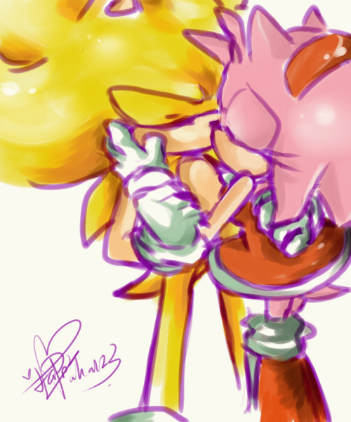 Wow so powerful and cute. Looks as if SuperSonic lost himself and then Amy comes to calm him down.