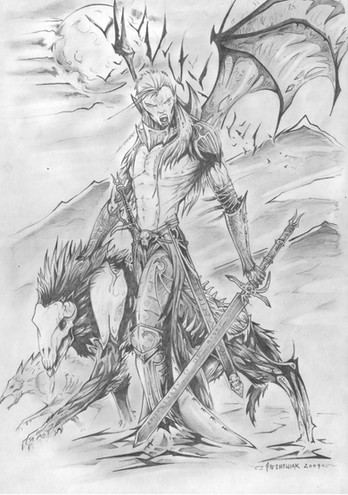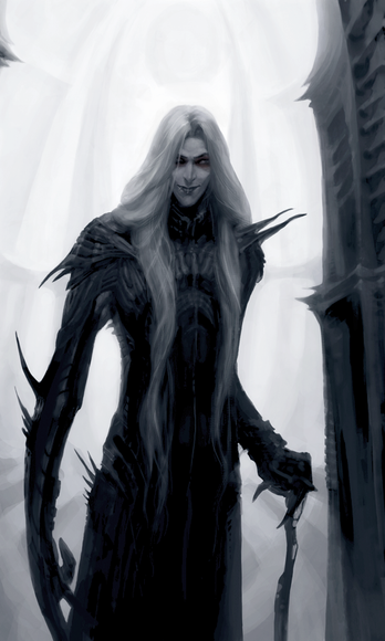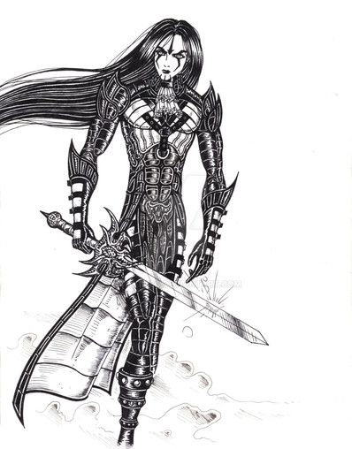 This reminds me of something from the Planescape art that used to accompany the campaign setting. Sleek and stylish but applied to the Silmarillion, I love it