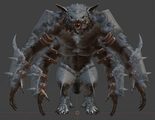 There is a 2 materials on bjody and armor. each material is a difuse map, specular,glossnes and normal map. Alpha channel on diffuse map for fur opacity. in this picture each 2048 (original size). in game engine we are compressing it to 1024 and even 512 almost without loosing quality
