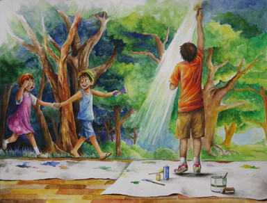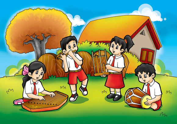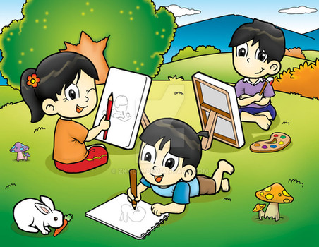 Anak - anak sekolah dasar yang sangat antusias dalam pelajaran menggambar serta melukis yang dilakukan di luar ruangan..Mari kenalkan seni kepada anak sejak dini