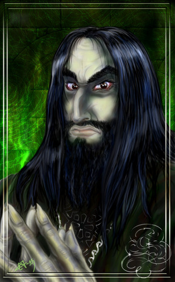 Ras Al Ghul has to bath in his Lazarus Pits to pursue his immortal life of evil. Only Batman finds grace to his eyes as Ras considers the one he calls Detective as the only one able to succeed him.Used Hinton St Mary mosaic as texture.