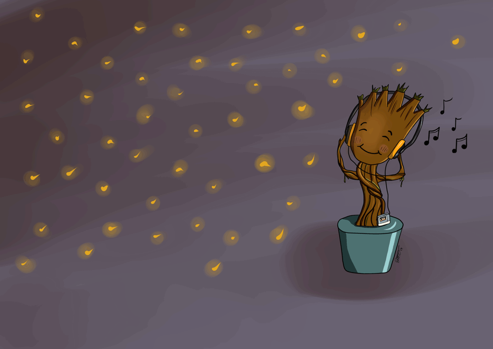 using this as my mobile wallpaper. so lovely, it captures the good vibe of Groot dancing and being cute and oooooooooooooown *3* good job!