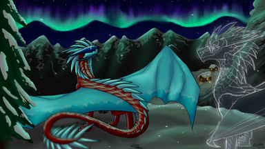 #digitalart #digitalpainting #dragon #sky #wingsoffire #procreate #originalcharacter #fantasyart #forest #lightray #pine #pistol #winter #winterlandscape #zmacp