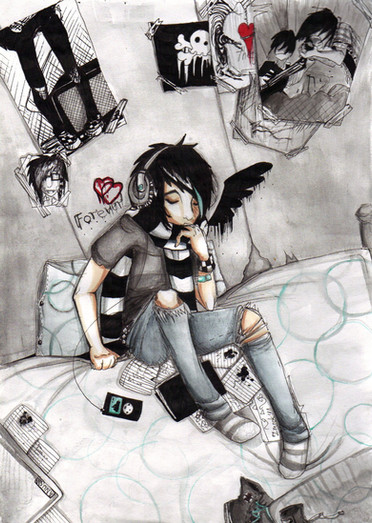 Nie wiem, serio. Narysowałam coś... dziwnego na gejografii (a to akurat był taki jeden z 'dziwnych' dni w szkole, chyba osom team się do mnie nie odzywał, albo ja do nich, albo i jedno i drugie, co z siebie wynika i jakoś tak se narysowałam a potem pomalowałam O__o""" )