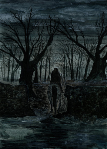 Its a shame this isn't a flash file or something if you could add audio. just the whistling of the wind and the eerie creepy noises of the forest playing over the slow sound of horse hooves thudding along. Β It would really play along with this long solitary ride.