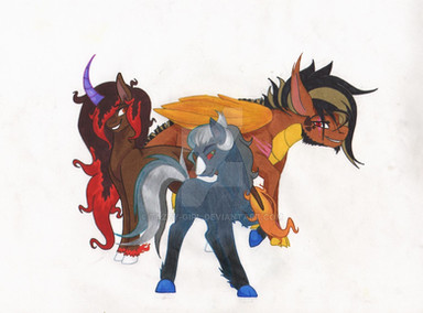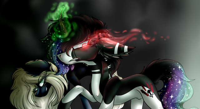 Commission for ultimimega of his OC's Reinst and an unnamed Primal Plan Pony.Hope you like it!