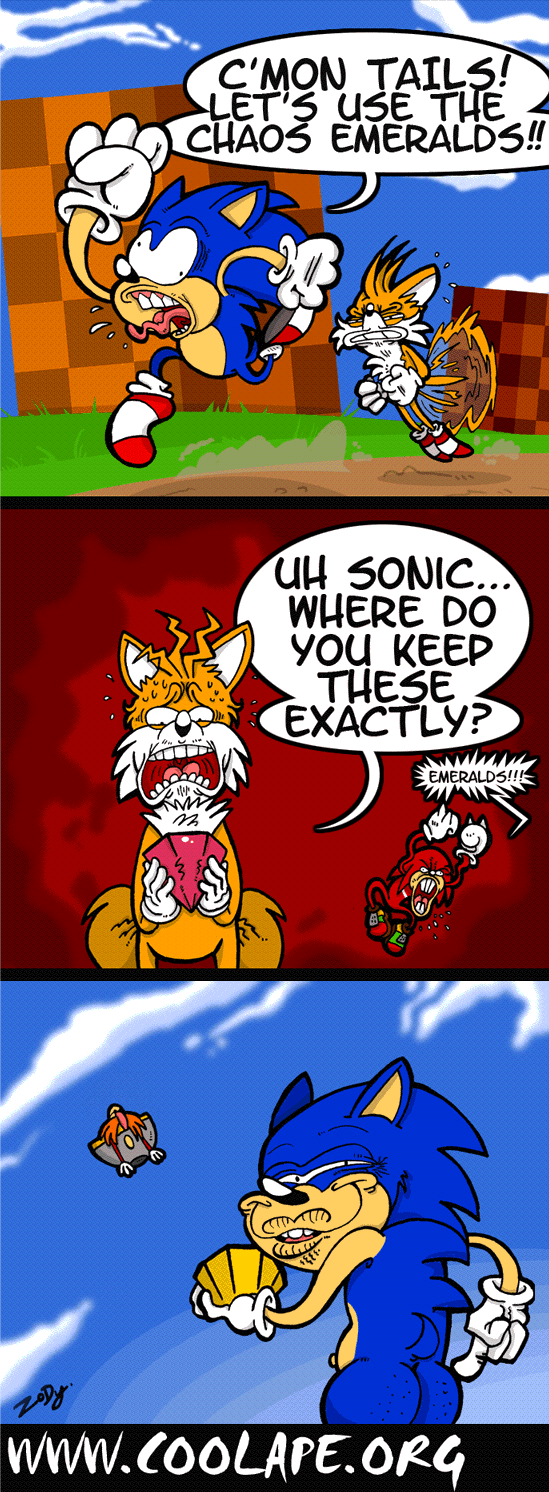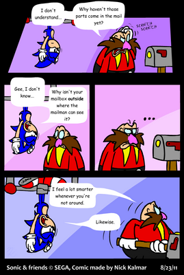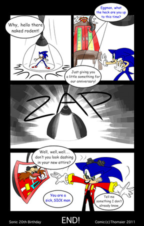 Seeing as you all STILL watch me for Sonic stuff have a taste of this. And check out more comics at www.coolape.org(Oh yeah and Happy Birthday EGGMAN! Dont forget he's as old as Sonic..just hasn't aged well.)