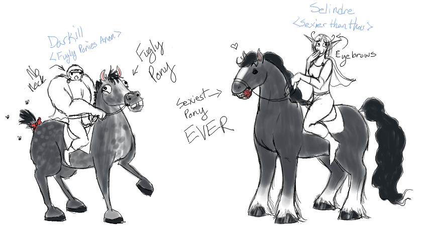 Well I'm glad they amuse people. You might be interested in my most recent doodle: [link] I made it for a friend on World of Warcraft since I kept on making fun of how his mount (which is exactly the same as my new one