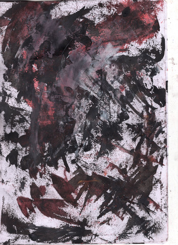materials: liquid latex, gouache paint, fabric paint, cigarette ashes. toilet paper, notebook paper